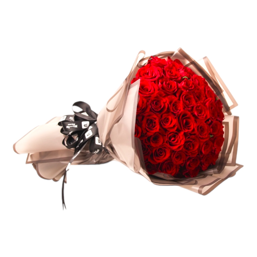 ٥٠ روز احمر تغليف رصاصي فاتح | باقة