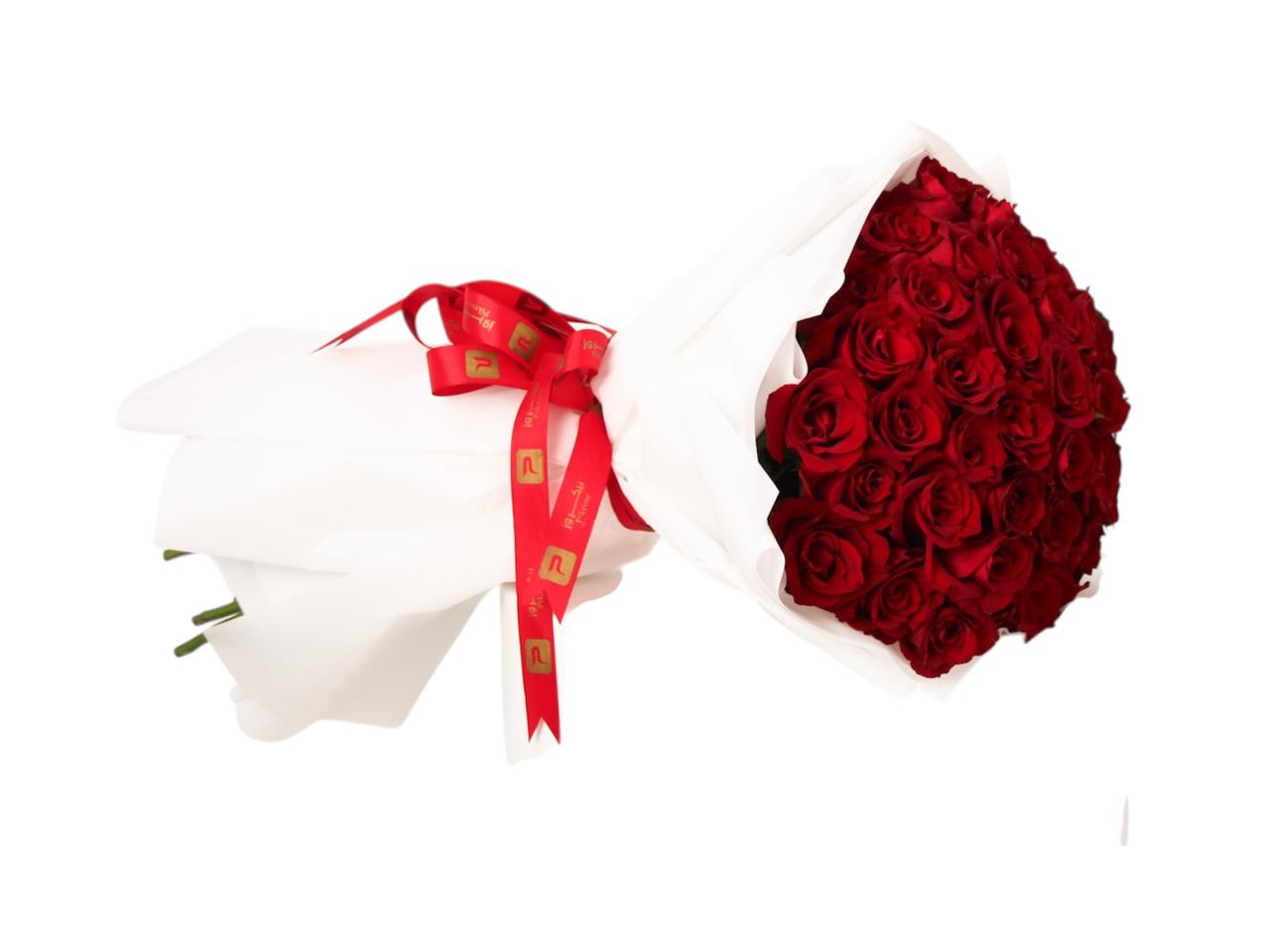 ٥٠ روز احمر تغليف ابيض | باقة
